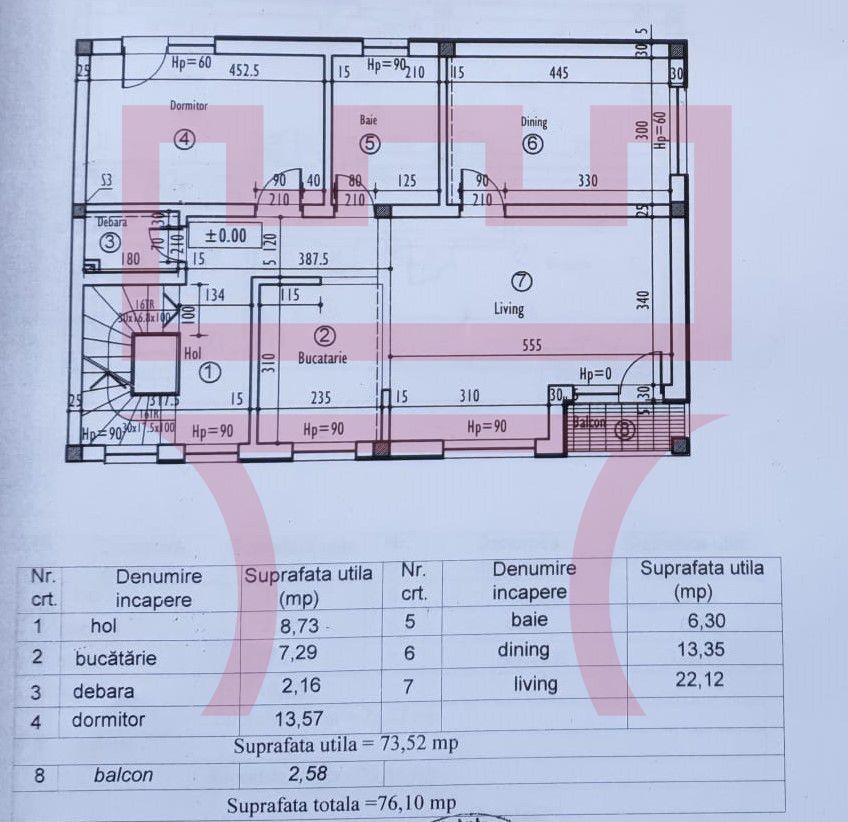 suprafața utilă 74 mp
